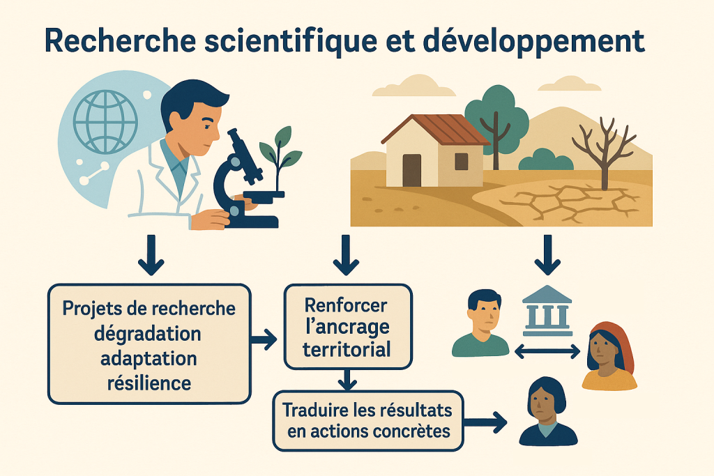 La recherche-développement constitue un vecteur clé de transformation durable des territoires ruraux et arides. En favorisant la valorisation concrète des résultats scientifiques sur le terrain, elle renforce l’efficacité des politiques locales et des initiatives communautaires. Ce processus repose sur une logique de co-développement et de co-innovation, mobilisant une diversité d’acteurs : chercheurs, décideurs, ONG, agriculteurs, […]